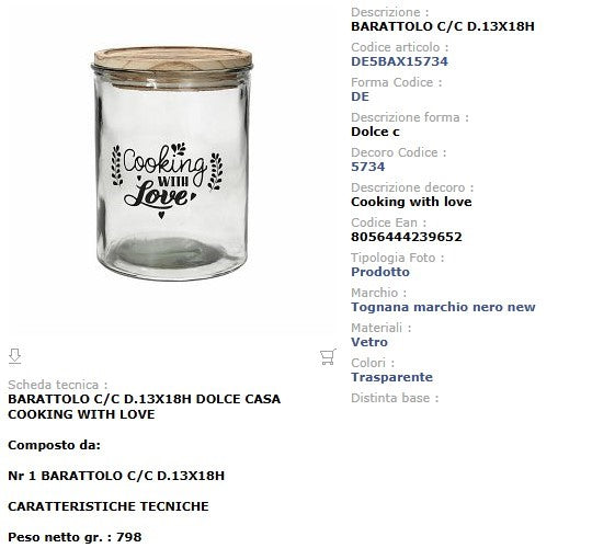 Barattolo Vetro con Coperchio 1850 cc Tognana Cooking With Love - Contenitore Cucina Urban